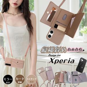 ミラー付き Xperia10VIケース 四つ角 ショルダーストラップ付き xperia1VIIケース エクスペリア 10 IV 鏡付き スマホ カード収納 背面ポケット 背面手帳型