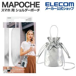 スマホ 用 ショルダーポーチ MAPOCHE 汎用 巾着型タイプ スマートフォン ショルダー ポーチ 巾着タイプ シルバー P-MAP08SV エレコム 在庫処分