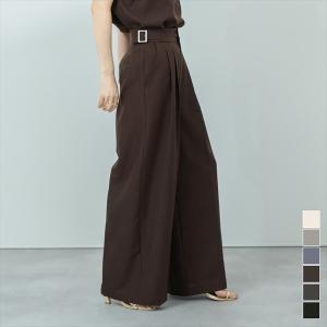 スラックス パンツ 「 選べる17色展開/新素材で新登場! 」太ベルトハイウエストウールライクカラータックスラックス レディース