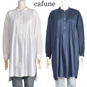カフネ コットン ロング ブラウス ピンタック レディース 長袖 ホワイト 白 ネイビー 40代 50代