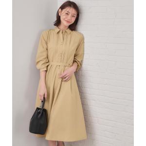 ワンピース ベルト付きタックシャツワンピース「洗濯機OK/イージーアイロン」