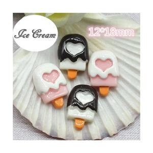 バニラでハート模様を描いたアイスクリーム 5個セット★スイーツデコ 貼り付けパーツ