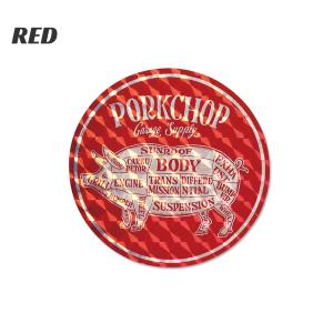 ポークチョップ ステッカー 車 アメリカン おしゃれ バイク かっこいい アメカジ ホットロッド PORKCHOP ホログラムサークル レッド