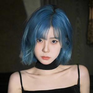 ウィッグ フルウィッグ ブルー 青 ショート レディース ハロウィン ふんわり前髪 切りっぱなしボブ ボブヘアー ナチュラル 原宿風
