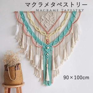 タペストリー 北欧 壁飾り おしゃれ 棒付き 手作り編み マクラメタペストリー 壁掛け ファブリック壁装飾 毛糸 ナチュラル