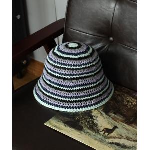 帽子 ハット ボーダー柄 透かし編みニットサーモハット メンズ レディース
