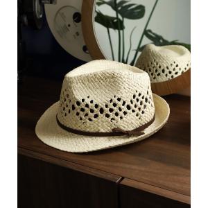 帽子 ハット フェイクレザーリボン付き ペーパーフェドラハット メンズ レディース