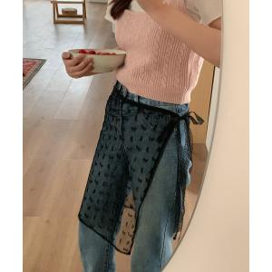 スカート レースラップスカート リボン柄 レース レイヤード 巻きスカート