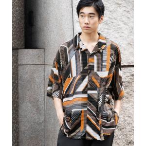 シャツ 幾何学柄透かしシャツ メンズ