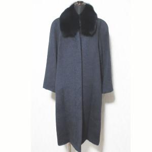 美品 TAKEO de 365 タケオニシダ PIACENZA フォックスファー ベビーラム ウール カシミヤブレンド ロングコート 38 ネイビー レディース 古着 中古