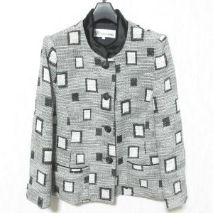 美品 TAKEO NISHIDA タケオニシダ スタンドカラージャケット 13 グレー ホワイト ブラック レディース 古着 中古