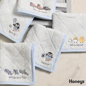 ハンカチ タオルハンカチ ミニタオル 刺繍 綿100% ワンポイント アニマル柄 ダイヤモンドジャカード ユニーク レディース Honeys ハニーズ ハンカチタオル