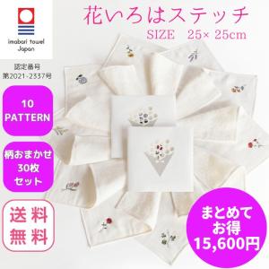 今治タオル ハンカチ 刺繍 25×25cm レディース 30枚 色柄 おまかせ 花いろは ステッチ ガーゼ 個包装 ギフト プレゼント まとめ買い 送料無料 退職 転勤