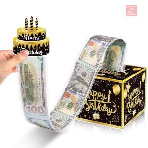 バースデーケーキデコレーションキャッシュボックス/サプライズバースデーパーティーデコレーションボックス/誕生日雰囲気レイアウト小道具 ブラックゴールドキ