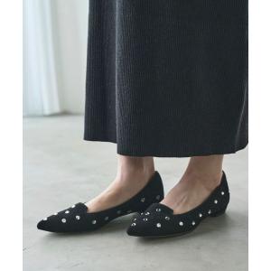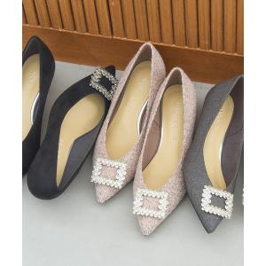 パンプス クリスタルビジューフラットパンプス