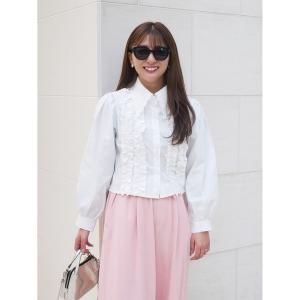 ブラウス シャツ ビックレースカラーデザインフリルブラウス レディース