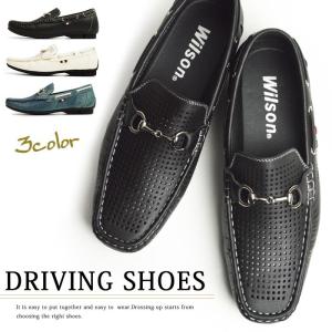 ドライビングシューズ メンズ ビットローファー Wilson パンチング ウォッシュ加工 デッキシューズ ローファー スリッポン モカシン カジュアルシューズ 大人