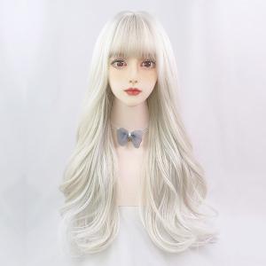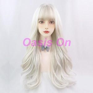 フルウィッグ ウェーブロング アイボリー シルバー ゴールド 銀 金 ストレート レディース 前髪あり 原宿風 かつら コスプレ