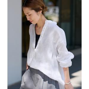 ブラウス シャツ 「追加」フレンチリネンバンドカラーシャツ レディース