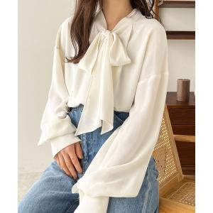 ブラウス シャツ ボリュームスリーブ 2wayクラシカルボウタイリボンブラウス レディース
