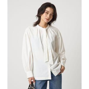 ブラウス シャツ 2wayリボンオーガンジーパール釦ブラウス レディース