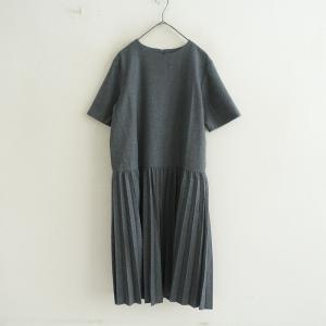 ヴェリテクール Veritecoeur *ウールプリーツ切替ワンピース*F毛グレー半袖ノーカラーフレアドレス(25-2510-216)【40K52】