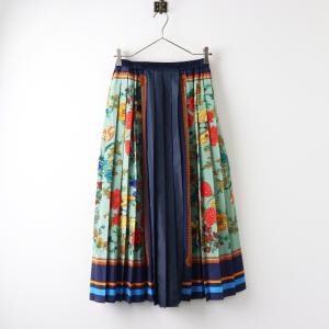 美品 ミュベール MUVEIL スカーフプリント ロングプリーツスカート 38 ネイビー/フラワー 花柄【2400014463101】