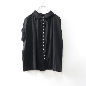 タング:tang: コットン ドルマンスリーブ シャツ ブラウス 38|ブラック トップス 前開き カットソー 【2400014692563】