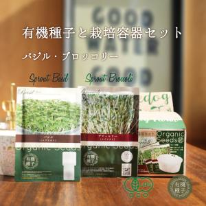 ブロッコリースプラウト種・バジルスプラウト種と栽培容器セット 有機種子 バジル ブロッコリー スプラウト 有機 容器付き 家庭菜園 種 オーガニック