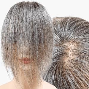 部分ウィッグ かつら ヘアピース ポイントウィッグ 白髪(白8黒2(人毛100%), グレイヘアーショート(前髪未カット&ベース大)
