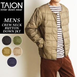 爆買 TAION タイオン インナーダウン ジャケット クルーネック ボタン メンズ 軽量 防寒 あたたかい スナップボタン 丸首 TAION-104