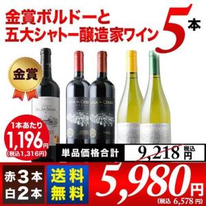 ワイン ワインセット 金賞ボルドーと五大シャトー醸造家ワイン5本セット(赤3本&白2本)送料無料「7/11更新」