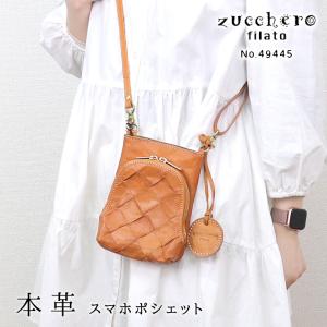 スマホポシェット スマホショルダー レディース 本革 zucchero filato 49445 ブラウン ショルダー レザー バッグ ナチュラル ギフト プレゼント