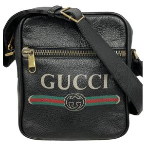 グッチ グッチプリント ショルダーバッグ ポートフォリオ ブラック 黒 メンズ ロゴ レザー GUCCI 523591 【中古】