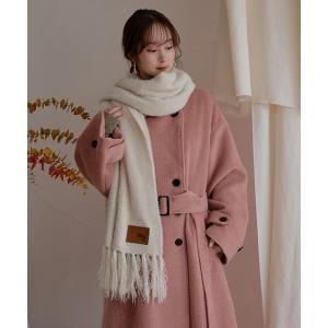 マフラー ストール ロゴ刺繍フリンジボアマフラー/ポケット付き レディース