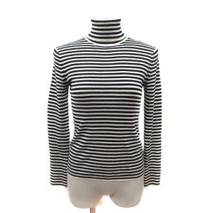 ミラオーウェン Mila Owen ニット カットソー タートルネック ウール ボーダー 長袖 0 黒 ブラック 白 ホワイト /MS レディース