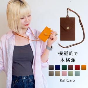 縦型 IDカードホルダー 本革 イタリアンレザー ネックストラップ付き フリーポケット IDホルダー IDケース ビジネス ICカード 定期券 社員証 RafiCaro