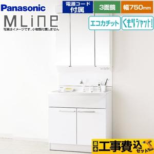 工事費込みセット 洗面化粧台 幅750mm パナソニック GQM75KECW+XGQM075DSCATC エムライン MLine