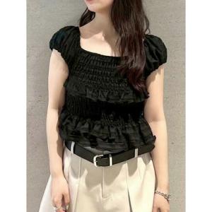 リリーブラウン LILY BROWN シャーリングフリルトップス (BLK)