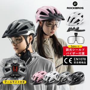 自転車 ヘルメット ライト搭載 テールライト付き 大人 シールド バイザー付属 男性 女性 通勤通学 USB充電 3点灯モード 55-61cm サイズ調整可能 ロックブロス
