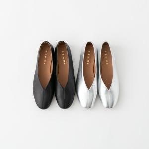 レメ Vカット レザー ローヒールパンプス REMME ZH-6410-SH フラットシューズ シルバー ブラック