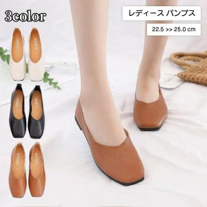 パンプス フラットパンプス ぺたんこ ローヒール 靴 スクエアトゥ レディース 女性 無地 シューズ シンプル おしゃれ カジュアル きれいめ