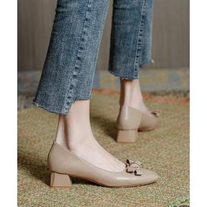 パンプス レザー調 クロスリボン チャンキー ローヒール パンプス