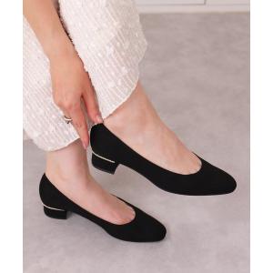 パンプス ビジューラインヒール スエード調プレーンパンプス