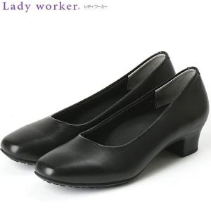 レディーワーカー パンプス レディース 靴 黒 ブラック 幅広 5E 痛くない スクエアトゥ 4cm 消臭 フォーマル 冠婚葬祭 歩きやすい 走れる Lady worker LO-17460