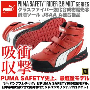 PUMA プーマ 安全靴 Rider 2.0 Red Mid ミドルカット セーフティシューズ 軽量 衝撃吸収 耐油 耐熱 フィット感 グラスファイバー 強化樹脂先芯 JSAA A種 レッド