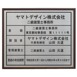 二級建築士事務所看板 ステンレスプレート シルバー額入り おしゃれな二級建築士事務所登録票