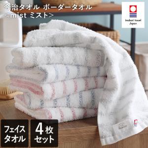 今治タオル フェイスタオル <同色4枚セット> ボーダー ミスト mist 日本製 圧縮 送料無料