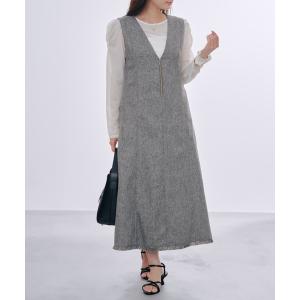 ワンピース ツイードフロントジップジャンパースカート 「低身長・小柄女性」
