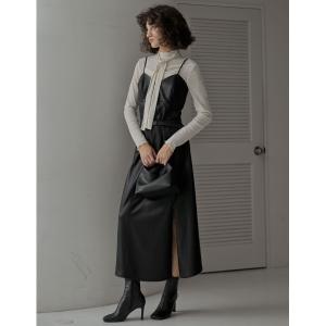 ワンピース 「2025 WINTER PRE ORDER」「低身長/高身長サイズ有」フェイクレザーサイドスリットAラインキャミワンピース